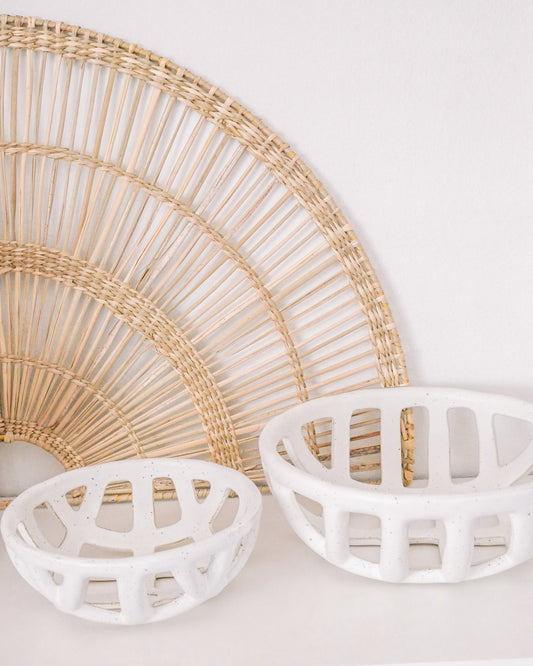 Cream Stoneware Basket Bowl