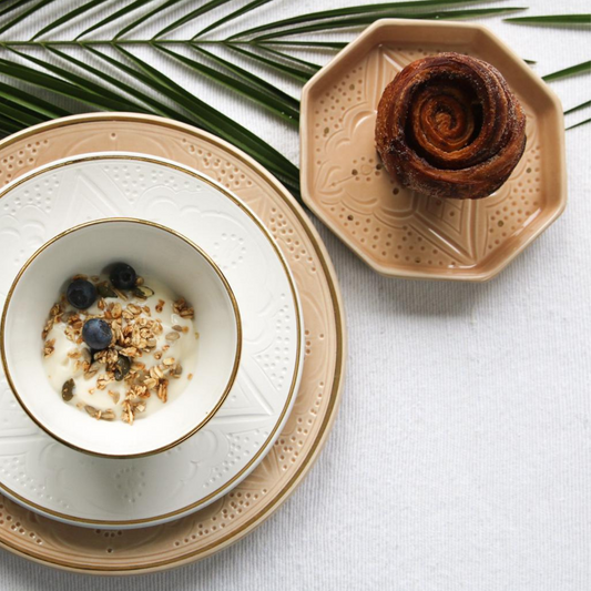 Moroccan kitchen and dining decor features vibrant plates, bowls, and accents with intricate hand-painted designs. They bring a touch of artistry and tradition to every meal.