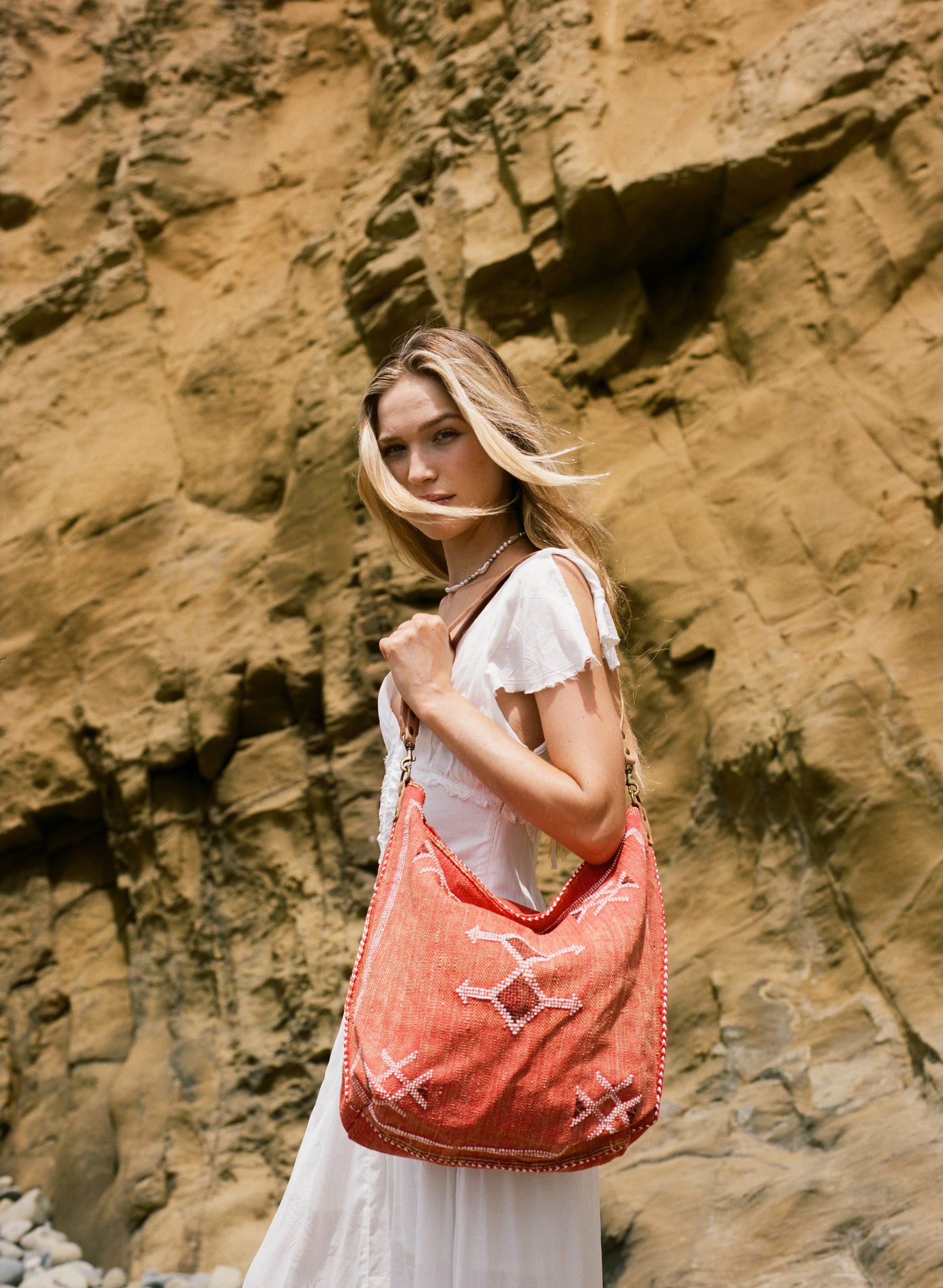 Coral Moroccan Cactus Silk Tote