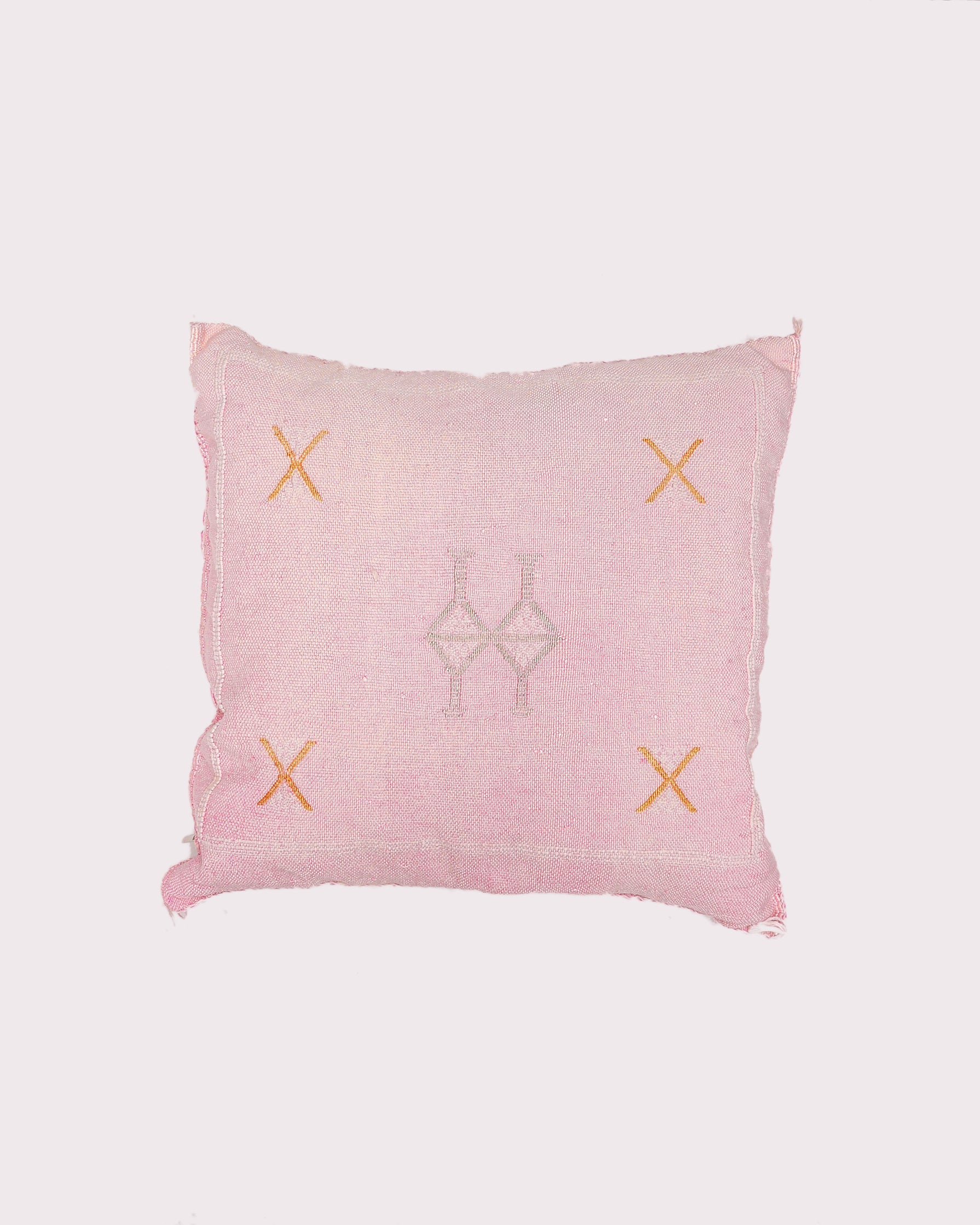 Moroccan Sabra: A Moroccan tradition—cactus silk, or sabra is a handmade fabric crafted of agave silk using a process of peeling the agave succulent to produce threads. The threads are then colored with vegetal dyes, and woven on traditional weaving looms making each pillow unique and special.