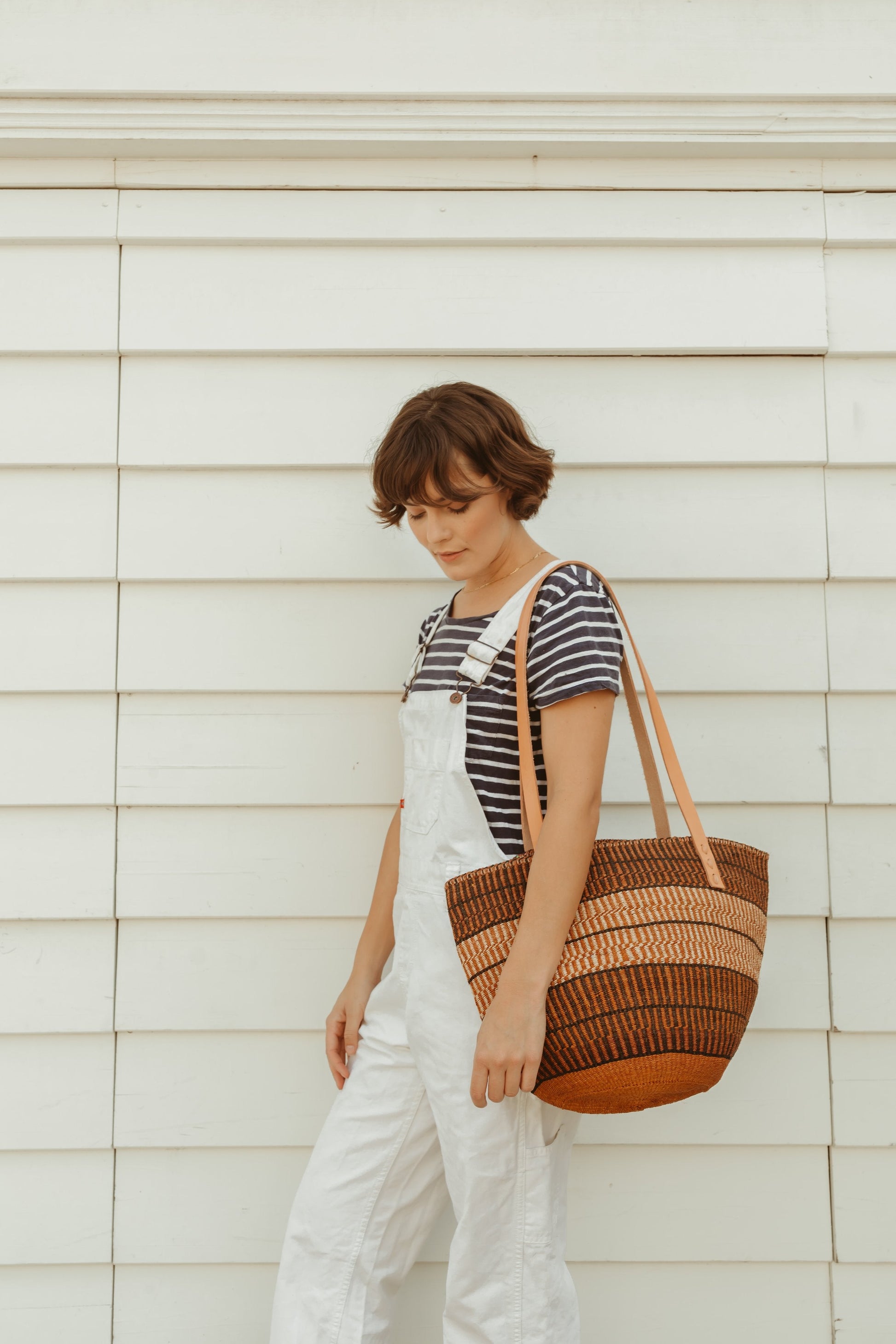 Medium Brown Stripes Sisal Basket Bag